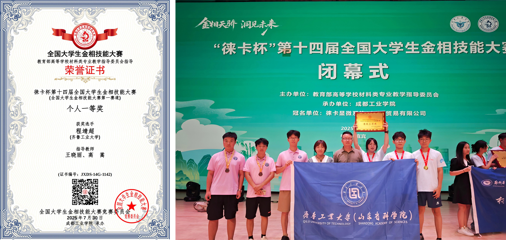 第十四届全国大学生金相技能大赛国赛于2025年7月25日至30日在四川省宜宾市成都工业学院宜宾校区举行,规模创历届赛事之最。大赛通过“以赛促教、以赛促改、以赛促学”模式提升学生的专业技能、工匠精神和科学素养,引导大学生努力成为精于一技、专于一业的高技能人才?;笛Р垦ё釉诹礁鋈乐泄踩倩窀鋈艘坏冉?项、个人二等奖1项、个人三等奖5项。
